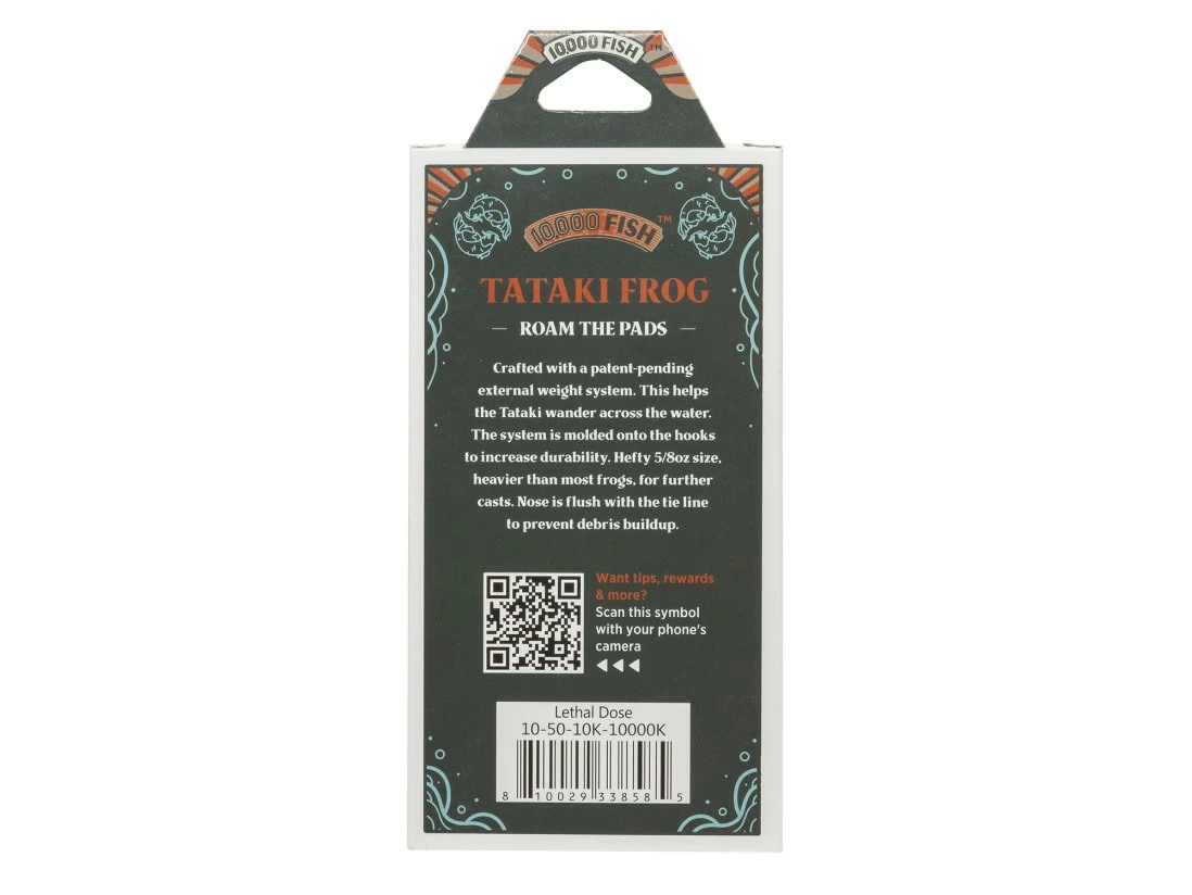 The Tataki Frog roams the pads and mats at its own pace. Featuring a patent-pending External Walking Weight system, its innovative weight distribution allows for easy walking across the top of the water. Crafted with hidden hook points that tuck into its back for fighting off weeds and maximizing hooksets. Heavier than most frogs for longer casts. Journey the untamed with the Tataki Frog.