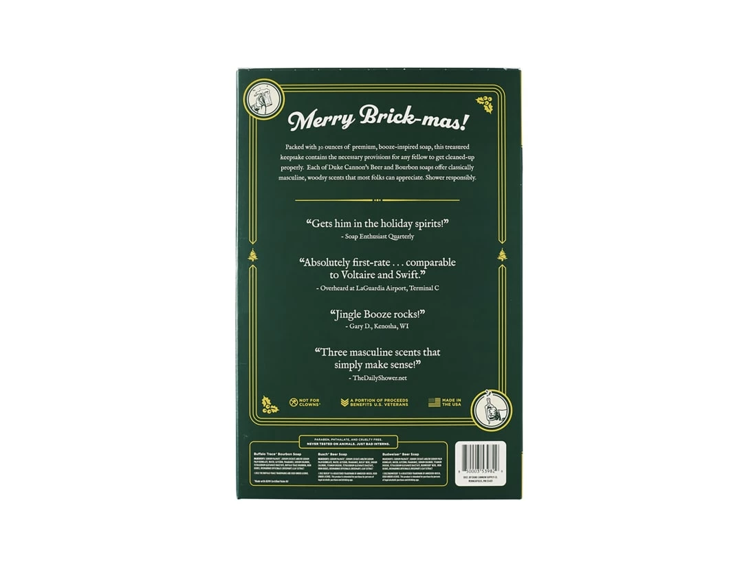 Freshly brewed from Duke Cannon, the Jingle Booze Soap Gift Set is a wonderful sampler of manly, fresh-smelling beer and bourbon soaps. This set makes the perfect gift for those that like frosty beers, smooth cocktails and fresh and long-lasting scents!