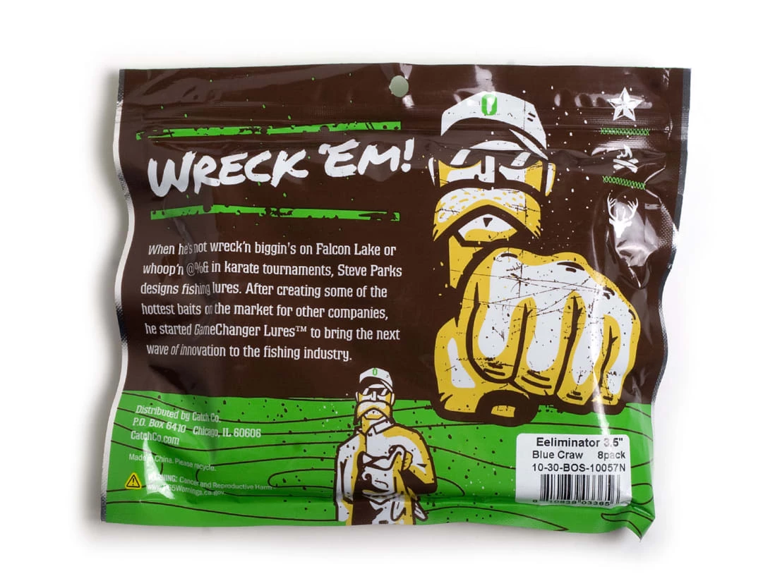Like nothing most bass or bass anglers have ever seen, the GameChanger Lures Eeliminator combines the profile and movements of several popular bass prey to create one unique bait. The large body of the bait and the long tail combine to create an unbelievable swimming action. Very versatile, the Eeliminator can be fished Texas-rigged, Carolina-rigged or even weightless and slow rolled just beneath the surface.