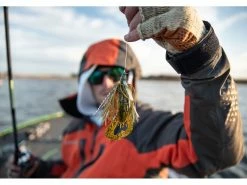When fish hang out in dense grass, the opportunity to ambush baitfish is one of the reasons they do it. You need a bait that can get into the strike zone and then present a convincing baitfish profile. Enter the swim jig. The Googan Squad Grass Hero is a swim jig that’s designed to penetrate heavy vegetation on the fall and then glide through the slop with ease, attracting predators and triggering vicious attacks. This bait features a slender head that narrows to a point near the eye of the hook. That makes it move more easily through vegetation. Add a paddle tail trailer for a wobbling action and thumping vibration. This bait is equipped with a strong, super-sharp hook and comes in a variety of fish-attracting color patterns.Â