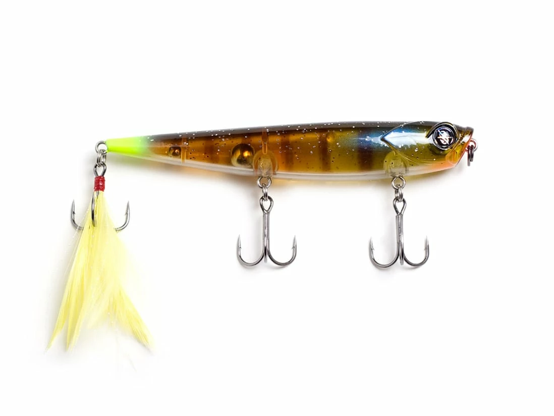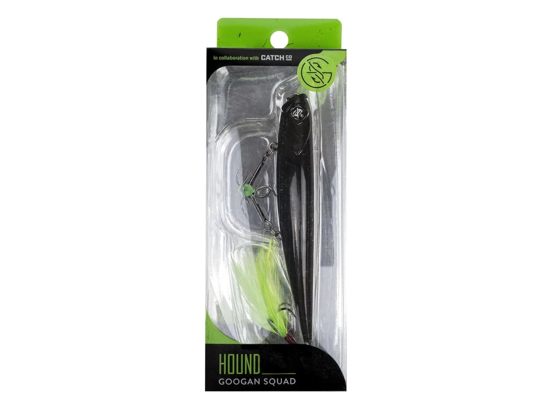 The Googan Squad Hound is a tight walking topwater bait with a cupped mouth for added splash as you bring this puppy in. It’s equipped with three sticky sharp, black nickel treble hooks, with a feathered back hook to help fool fish and keep them pinned.