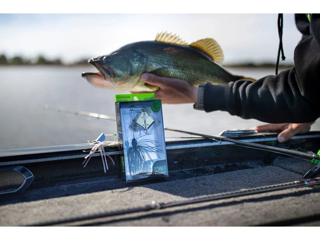 Pro Tips: Use the Googan Squad Hummer to create reaction strikes. Reel over schooling baitfish in areas you notice bass feeding actively. When faced with overcast situations, focus on open water areas near vegetation or cover. When the sun is high, keep your Hummer closer to cover, vegetation, and shaded areas.