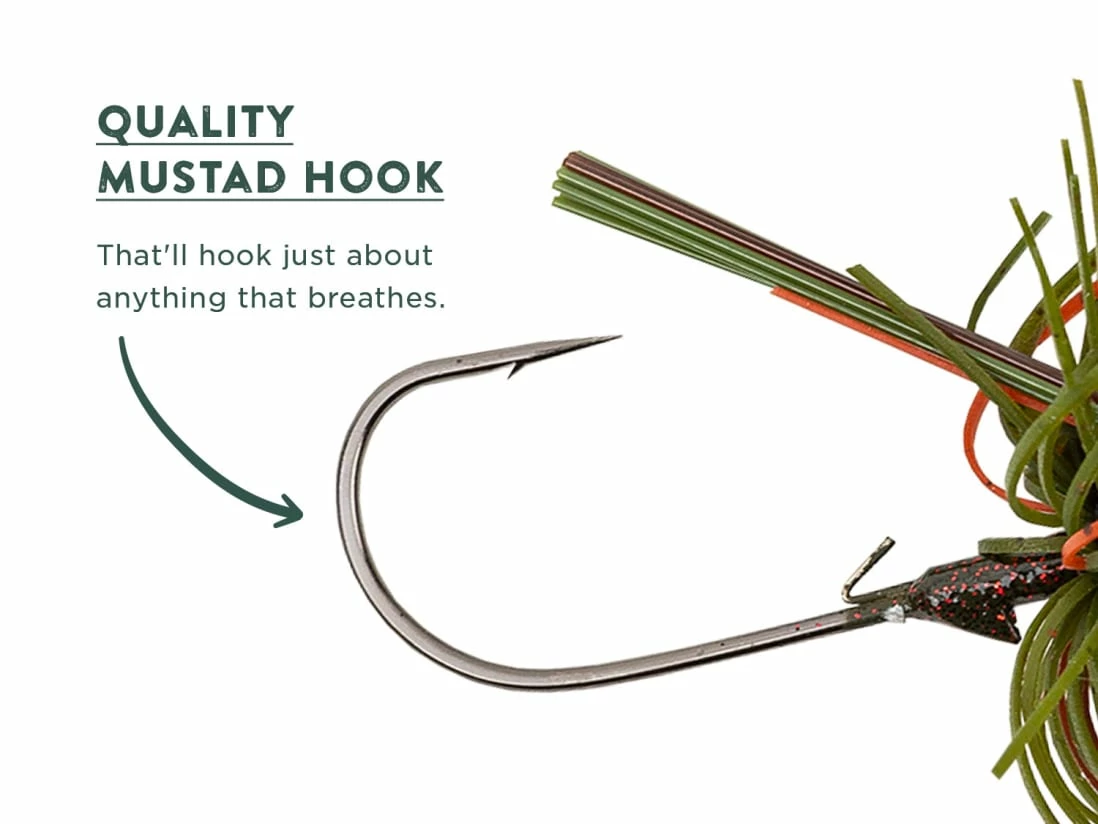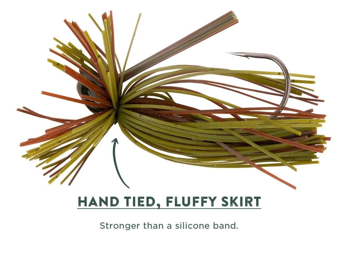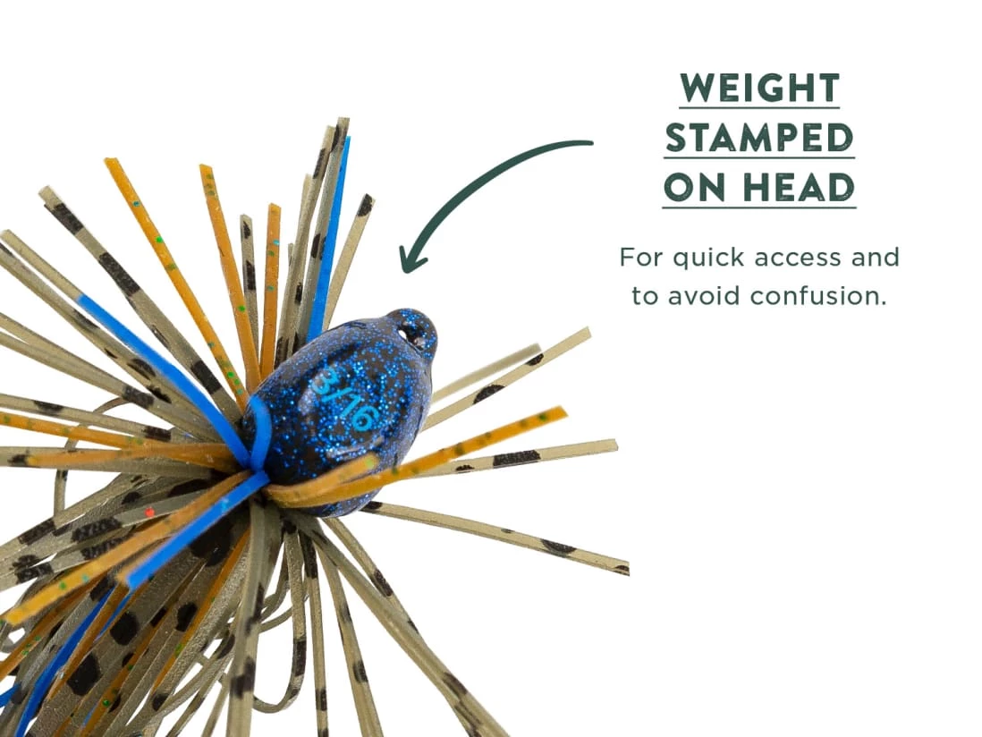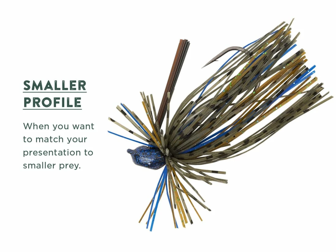 Googan Squad’s Lil’ Juicee Jig has all the great features and fishability of its popular full-sized cousin but in a scaled-down package. Most anglers rely on standard-size jigs as confidence baits, a nod to their legendary effectiveness and versatility. But sometimes, stubborn, heavily pressured fish will react more readily to a smaller jig. The compact profile of the Lil’ Juicee Jig won’t spook skittish bass, whether you’re pitching it into dense wood cover, bouncing it across a rocky bottom, or slipping it through thick vegetation. That’s the power of a finesses jig, and there’s no better available the Lil’ Juicee Jig. It’s coated with a tough finish in a range of time-tested color patterns, has color-matched, 100% silicone skirts, and comes equipped with a strong, dangerously sharp hook. When a jig is the right lure to throw but you need to show the fish a smaller target, reach for the Lil’ Juicee Jig from the Googan Squad!