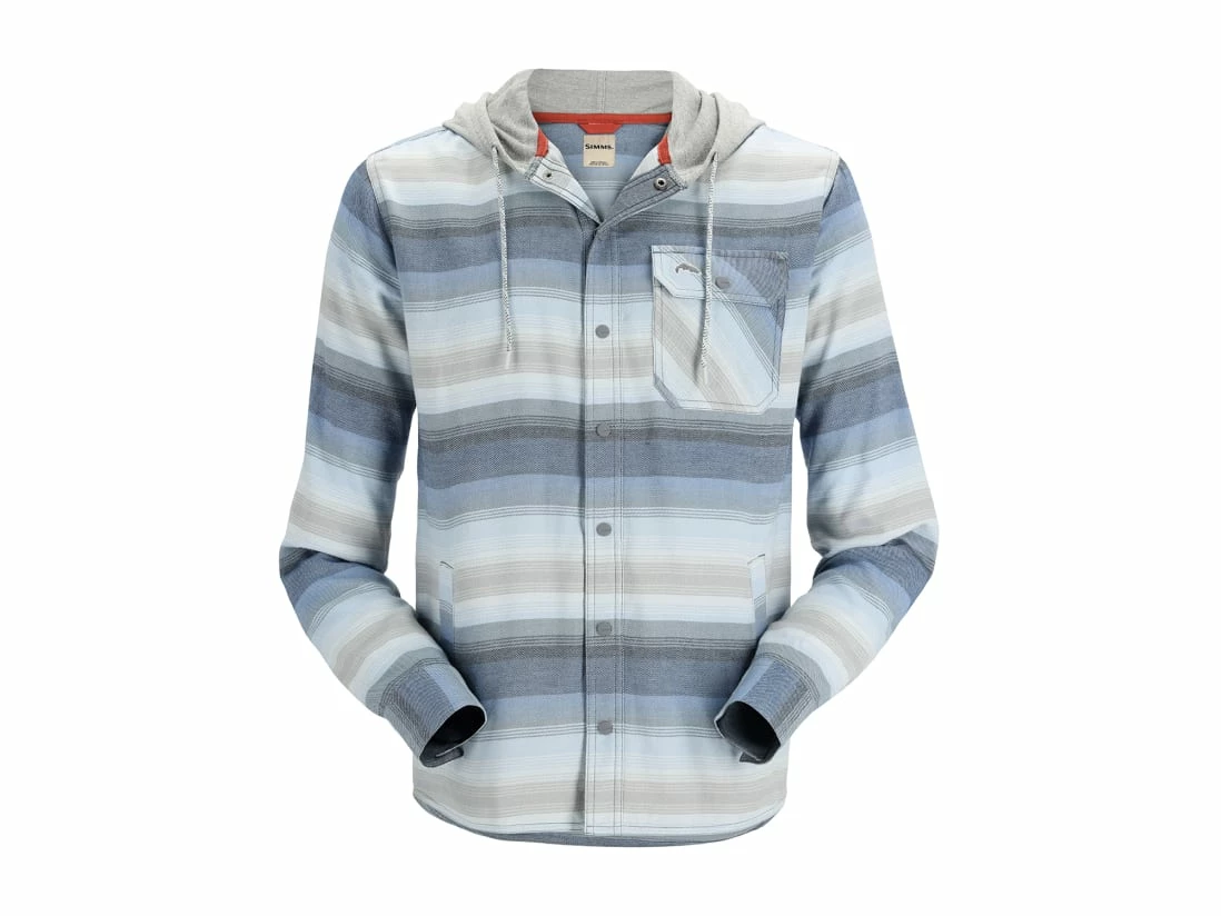 Crafted from a planet-conscious blend of organic cotton and recycled polyester, welcome to the Santee Flannel Hoody — a lightweight woven flannel, with the warmth of a knit hood and traditional snap-front fit for wearing on and off the water.